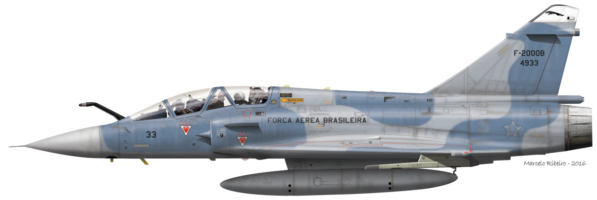 Entre a retirada de serviço dos Mirage IIIE/DBR das fileiras da FAB em 2005 e a dotação do Esquadrão Jaguar com caças F-5EM/FM, em 2014, o 1º Grupo de Defesa Aérea (1º GDA), estacionado na Base Aérea de Anápolis, em Goiás, voou caças franceses Mirage 2000 nas versões B e C.